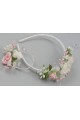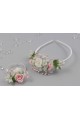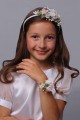 Wzór na fotografii należy do kategorii: Dodatki komunijne dla dziewczynek. Modelka prezentuje opaskę komunijną z bransoletką "Jak żywa" należącą do serii: Opaski komunijne z bransoletką "Jak żywe".
