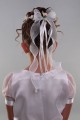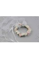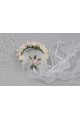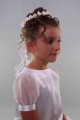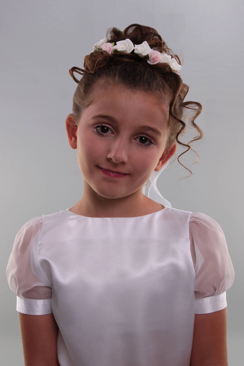Wzór na fotografii należy do kategorii: Dodatki komunijne dla dziewczynek. Modelka prezentuje wianek komunijny należący do serii: Wianki komunijne "Jak żywe" na koczek.