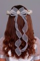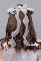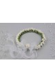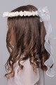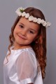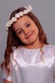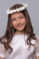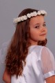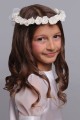 Wzór na fotografii należy do kategorii: Dodatki komunijne dla dziewczynek. Modelka prezentuje wianek komunijny należący do serii: Wianki komunijne "Jak żywe".