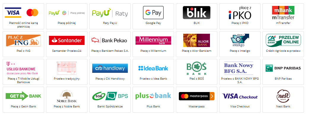 Płatności w naszym sklepie zrealizujesz dzięki systemowi PayU (system do płatności online),