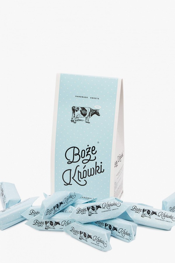 Boże Krówki, to tradycyjne polskie cukierki mleczne, pakowane m.in. w formie pudełeczka. W naszej ofercie posiadamy opakowania o pojemnościach 180g (11 cukierków) i 440g (30 cukierków). Dzięki doskonałemu smaku cukierków oraz estetycznej szacie graficznej pudełeczka, Boże Krówki stanowią doskonały prezent dla gości w dniu Pierwszej Komunii Świętej. Każda krówka zawiera od wewnętrznej strony wyjątkową sentencję. Co warte podkreślenia, na pudełeczkach umieszczone są niezbędne informacje o składzie Bożych Krówek: cukier, mleko, syrop glukozowy, margaryna (w niej lecytyna sojowa) oraz etylowanilina.