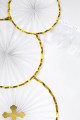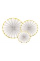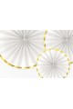 Rozety dekoracyjne w kolorze białym ze złotymi brzegami, średnice po złożeniu ok.40 cm, 32 cm, 23 cm.