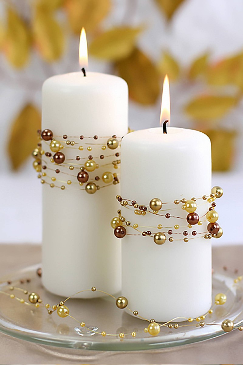 Złota perełka w girlandzie - KOMPLET 5 sztuk pięknej ozdoby na o nieograniczonych możliwościach dekoracyjnych. Do zastosowania w kwiatach, świecznikach, na obrusie, w zastawie czy dekoracji sali.