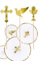 Wspaniała większa dekoracja komunijna składająca się z kompletu 6 sztuk symboli komunijnych przeznaczona do sali, pokoju lub ogrodu. Piękny złoty kolor podkreślił wyjątkowość kompletu 6 sztuk jakim jest ta dekoracja komunijna ze sztywnego papieru (po 2 szt. Kielich z Eucharystią, krzyż i gołąbek). Swoją delikatną formą przypomina ręcznie wykonaną wycinankę.