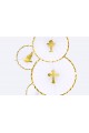 Niezwykle elegancko podkreśli urodę nie tylko tortu czy mufinek, ale też całego stołu. Ma zastosowanie również jako ozdoba pomieszczenia złotymi akcentami dzięki czemu możemy wyraźnie zaznaczyć stylistykę. Polecamy dołączyć do niej inne złote elementy np. ROZETY i wykorzystać jako przepiękne koło, które umieszczone wysoko udekorują stół, a dodatkową atrakcją z pewnością będzie samodzielne wypisanie na nich imienia dziecka, dla którego przyjęcie z okazji Pierwszej Komunii jest niezapomnianym przeżyciem. Nasza dekoracja w kształcie kompletu symboli komunijnych ma nieograniczone zastosowanie i stanowi pomysł dla osoby, która przygotowuje salę w restauracji, domu czy ogrodzie, gdzie może być dodatkową „perełką” upiększającą np. bukiety, doniczki kwiatowe, krzesła, ściany itp.