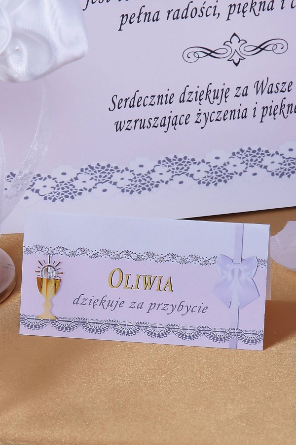 Podczas uroczystości przyjęcia Pierwszej Komunii Świętej, zależy nam, aby wszystko było doskonale zorganizowane. Okazuje się, że bardzo pomocne mogą się okazać nam personalizowane winietki komunijne na stół, dzięki którym w bardzo subtelny sposób umiejscowimy naszych gości na sali. Projektowane pod okiem specjalistów, oprócz funkcji praktycznej, nadadzą sali wspaniałego i eleganckiego klimatu. Oferujemy wiele motywów personalizowanych winietek komunijnych – np. kwiatowych, roślinnych lub minimalistycznych. Winietki komunijne podkreślą wyjątkowy charakter uroczystości i nadadzą wystroju ogromnej elegancji i szyku.