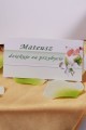 Komplet 5 sztuk wyjątkowych winietek komunijnych z podziękowaniem dla gości – format 90 cm na 90 cm personalizowany element na papierze kredowym. Wyjątkowość polega na grafice, która zapełnia cały obszar zaproszeń tzw. pełny zadruk oraz wydrukowane treści. Konieczne jest wypełnienie poniższych danych: