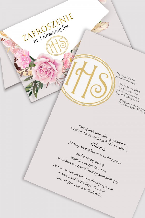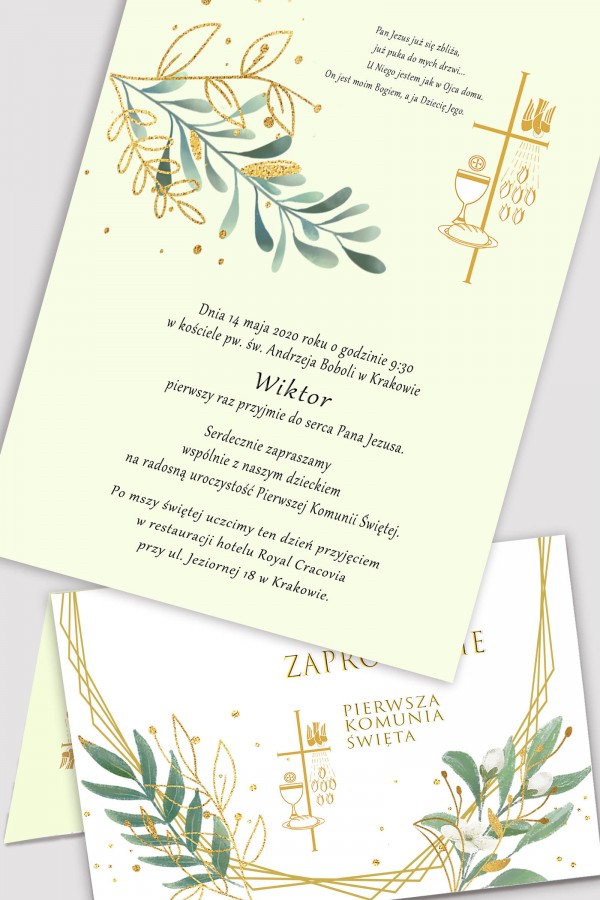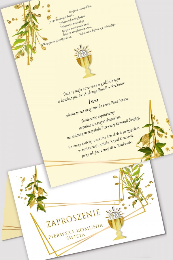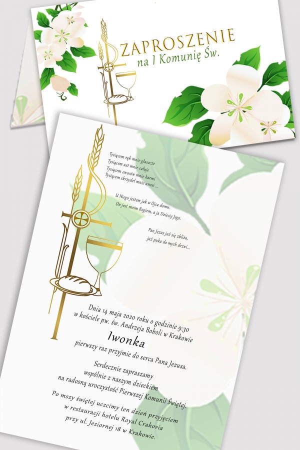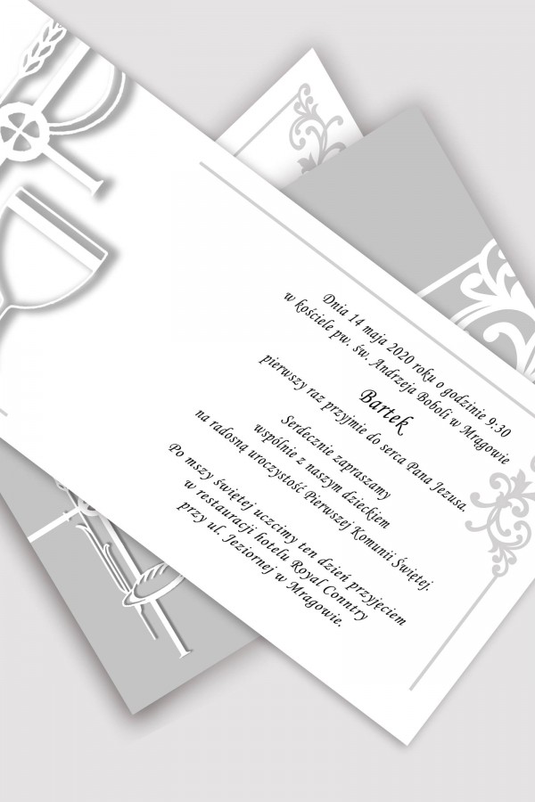 Pierwsza Komunia Święta to wyjątkowa uroczystość, którą chcemy dzielić z najbliższymi. Dlatego stworzyliśmy dla Państwa personalizowane zaproszenia komunijne z zestawów dla gości, aby móc wspólnie świętować tak ważne wydarzenie dla dzieci oraz ich bliskich. Każdy zestaw zawiera pięć sztuk zaproszeń wraz z kopertami. Szata graficzna została zaprojektowana w staranny sposób, aby podkreślić wyjątkowość tej uroczystości. Oferujemy bardzo szeroki wybór motywów m.in. kwiatowych, roślinnych oraz minimalistycznych. Personalizowane zestawy zaproszeń podkreślą podniosły charakter majowego wydarzenia. Dodatkowo, stanowią wspaniałą pamiątkę dla gości, uczestniczących w ceremonii Pierwszej Komunii Świętej.