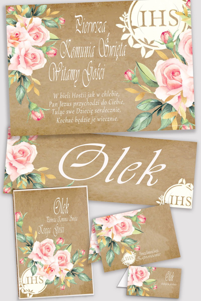 Personalizowany dekoracyjny zestaw komunijny - Pergaminowy bukiet