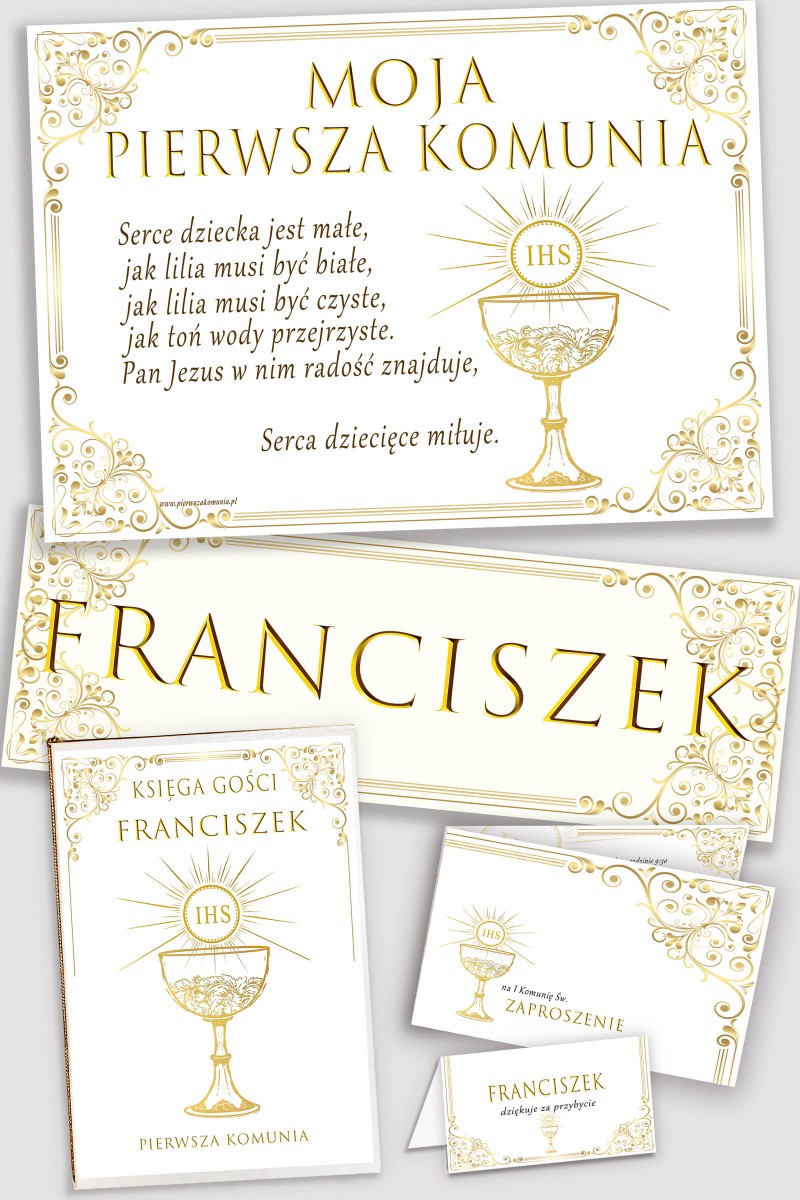Personalizowany dekoracyjny zestaw komunijny - Royal Gold