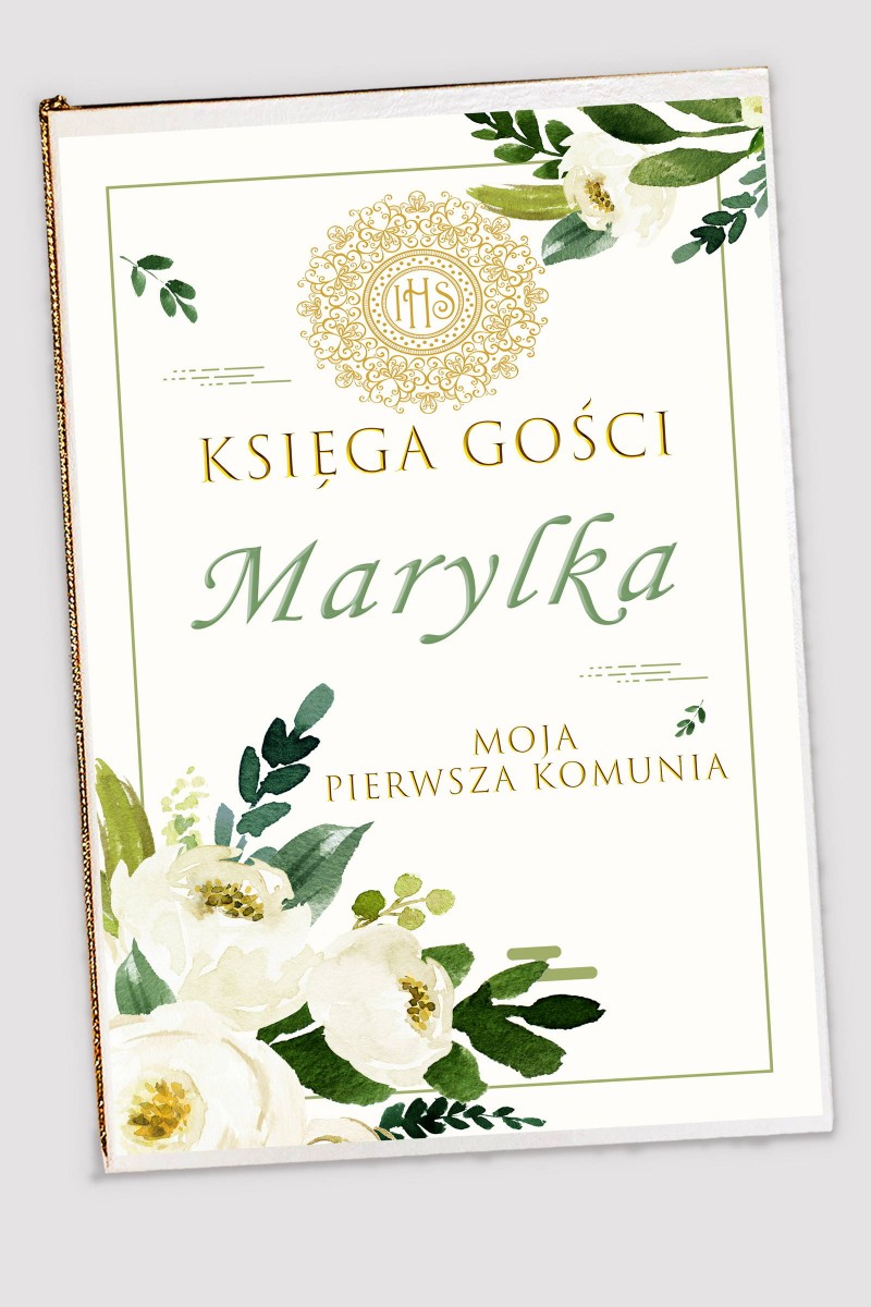Personalizowana księga pamiątkowa komunijna - Biały bukiecik