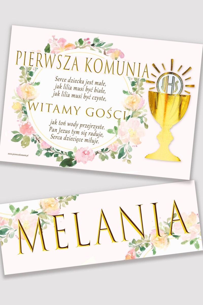Personalizowany plakat komunijny z imieniem - Akwarelka różowa