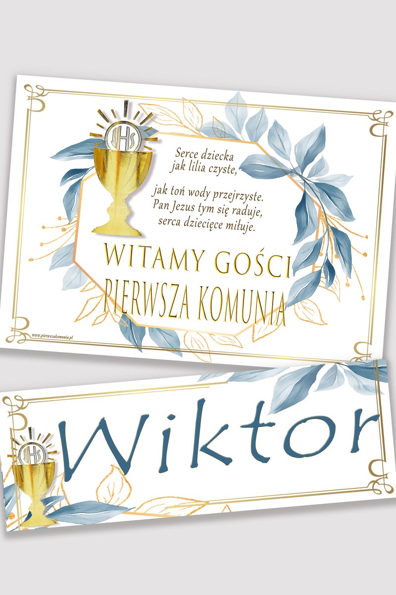 Personalizowany plakat komunijny z imieniem - Złoto z nutką granatu