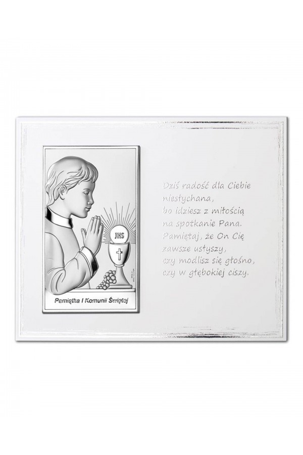 Pierwsza Komunia Święta jest ważnym dniem w życiu dzieci, którym towarzyszą przyjaciele ze szkoły oraz rodzina. Sakrament ten pozwala dzieciom poczuć się wyjątkowo, ponieważ wszyscy bliscy radują się i wspierają je w tym dniu. Podczas ceremonii  dziewczynki i chłopcy, przyjmujący komunię są ubrani w eleganckie sukienki komunijne lub alby, co podkreśla podniosłość tego wydarzenia. Aby na zawsze zapamiętać ten dzień, częstym prezentem, jakim obdarowuje się dzieci, są srebrne obrazki i figurki przedstawiające świętych, a także albumy oraz ramki na zdjęcia. Pamiątki te zawierają szczegółowe grafiki, a także grawery przypominające o tym wydarzeniu. W naszej ofercie można znaleźć wiele motywów pamiątek z okazji Pierwszej Komunii Świętej również z motywami dzieci, hostii czy kielicha.