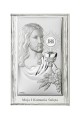 Srebrny obrazek z wizerunkiem Pana Jezusa - pamiątka wykonana metodą płaskorzeźby na srebrnym surowcu. Jest to idealny prezent upamiętniający sakrament Pierwszej Komunii Świętej. Produkt posiada elegancką formę, wykonany techniką plateru czyli artystyczny kształt blaszki pokrytej srebrem z wytłoczonym lub wygrawerowanym wzorem.