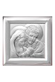 Obrazek Świętej Rodziny wykonany metodą płaskorzeźby na srebrnym surowcu. Jest to idealny prezent upamiętniający sakrament Pierwszej Komunii Świętej czy inne ważne duchowe wydarzenia. Produkt posiada elegancką formę, wykonany techniką plateru czyli artystyczny kształt blaszki pokrytej srebrem z wytłoczonym lub wygrawerowanym wzorem.