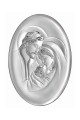 Obrazek Świętej Rodziny wykonany metodą płaskorzeźby na srebrnym surowcu. Jest to idealny prezent upamiętniający sakrament Pierwszej Komunii Świętej czy inne ważne duchowe wydarzenia. Produkt posiada elegancką formę, wykonany techniką plateru czyli artystyczny kształt blaszki pokrytej srebrem z wytłoczonym lub wygrawerowanym wzorem.