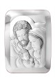 Obrazek Świętej Rodziny wykonany metodą płaskorzeźby na srebrnym surowcu. Jest to idealny prezent upamiętniający sakrament Pierwszej Komunii Świętej czy inne ważne duchowe wydarzenia. Produkt posiada elegancką formę, wykonany techniką plateru czyli artystyczny kształt blaszki pokrytej srebrem z wytłoczonym lub wygrawerowanym wzorem.