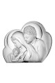 Obrazek Świętej Rodziny wykonany metodą płaskorzeźby na srebrnym surowcu. Jest to idealny prezent upamiętniający sakrament Pierwszej Komunii Świętej czy inne ważne duchowe wydarzenia. Produkt posiada elegancką formę, wykonany techniką plateru czyli artystyczny kształt blaszki pokrytej srebrem z wytłoczonym lub wygrawerowanym wzorem.